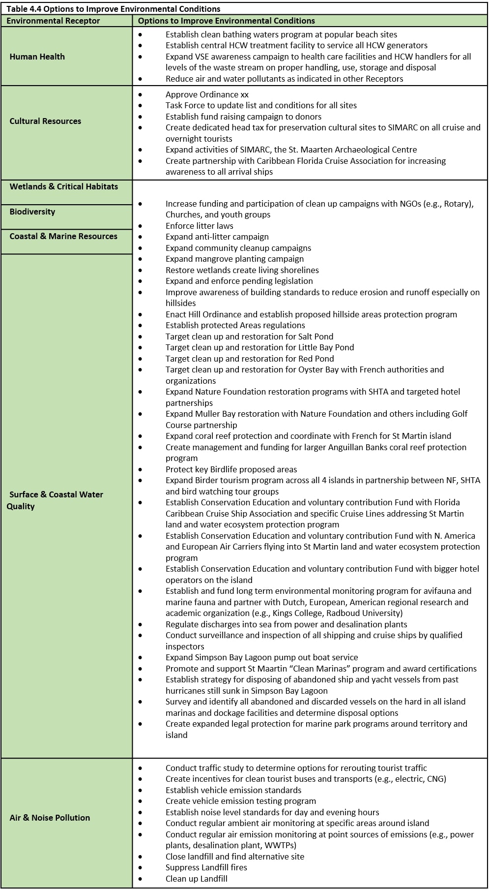 Establishing a broad definition of environment is necessary in this context, encompassing an appreciation of the cumulative pressures from the Drivers of development in Sint Maarten and the resulting impacts on the environment, natural resources and cultural fabric. Improved understanding of the complex nature of tourism development, and of its linkages to the environment, is crucial if a sustainable relationship is to be attained and maintained.