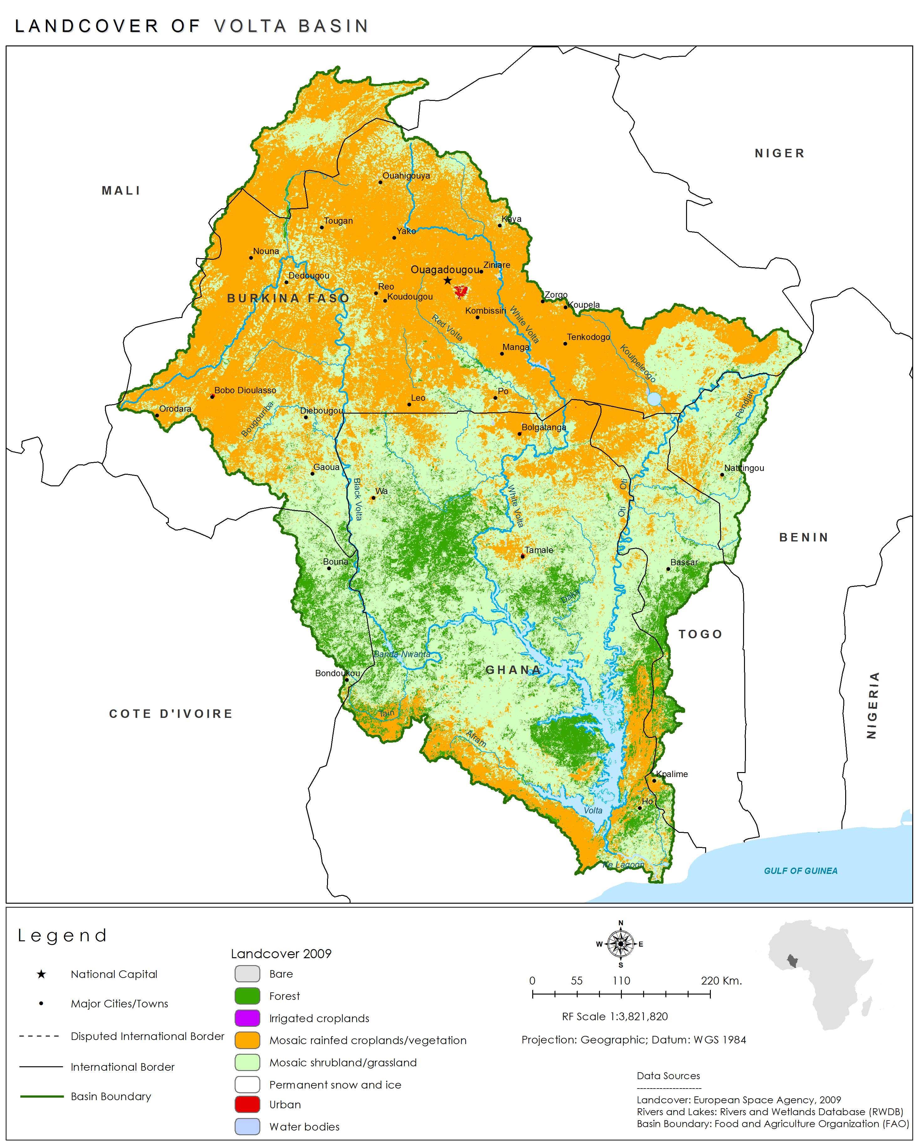 The Volta Basin is highly cultivated in some areas, with some forested and scrubland and grassland areas as well.