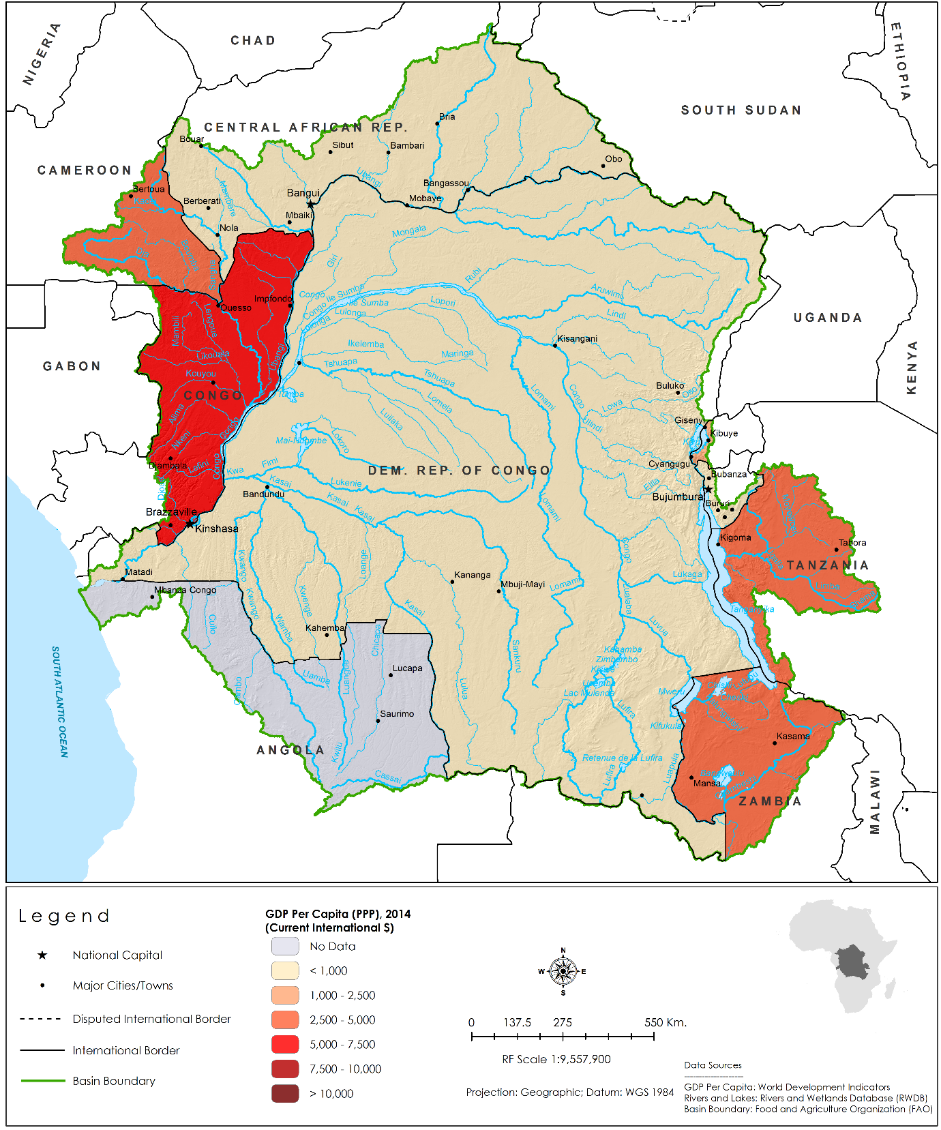 GDP per capital in the Congo Basin varies significantly by country.