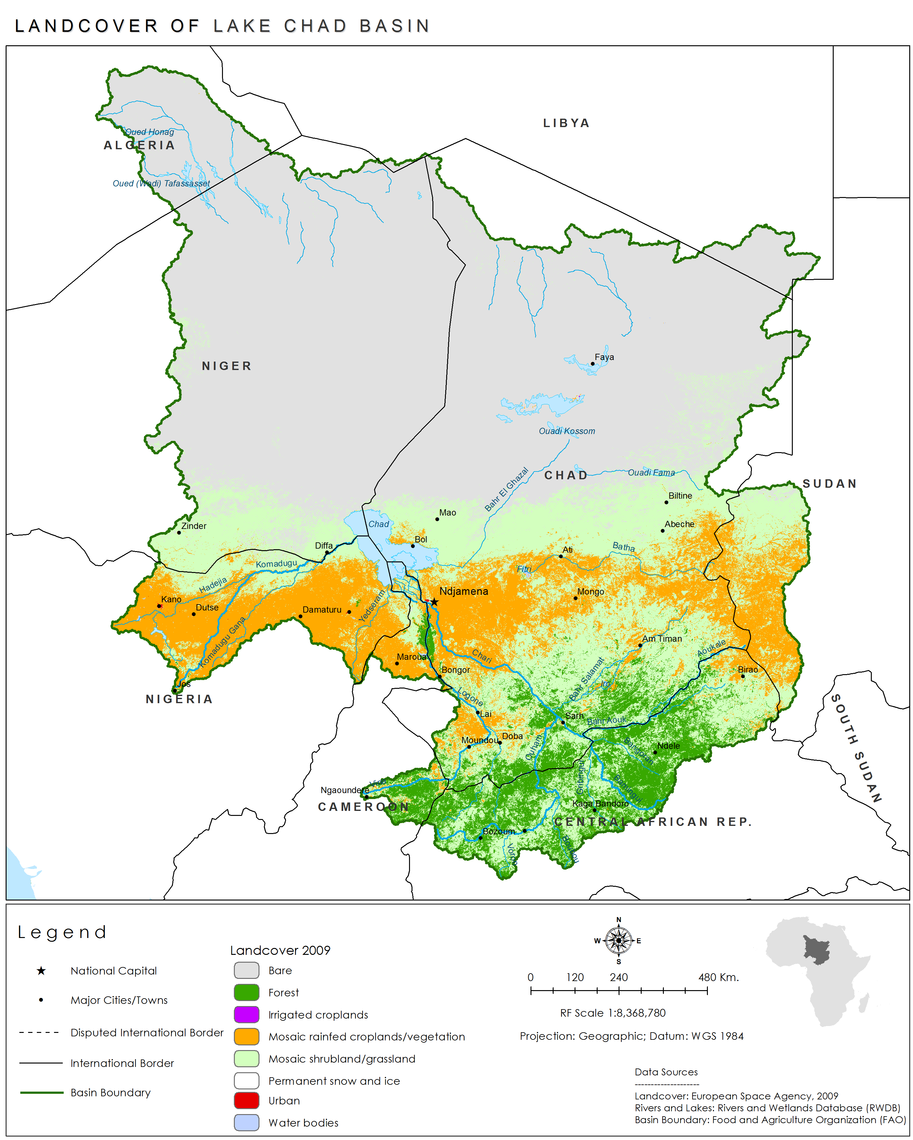 The Lake Chad Basin is primarily desert to the north, with forests and croplands only existing to the south.