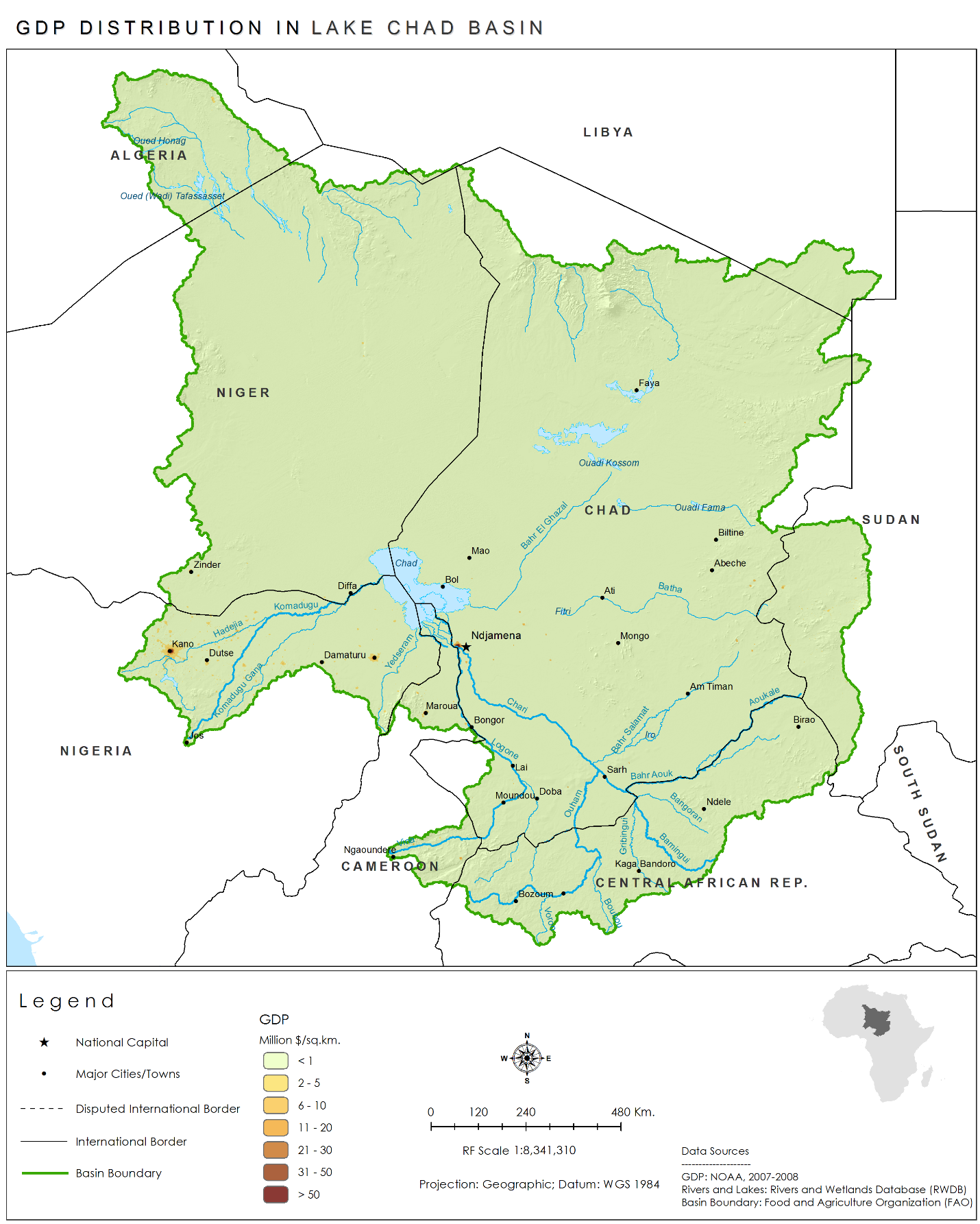The Lake Chad basin is highly impoverished, with very low overall GDP across most of the basin.