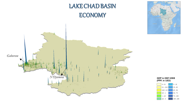 GDP within the Lake Chad basin is unevenly distributed, with concentrations in the urban areas of Gaborone and N’Djamena.