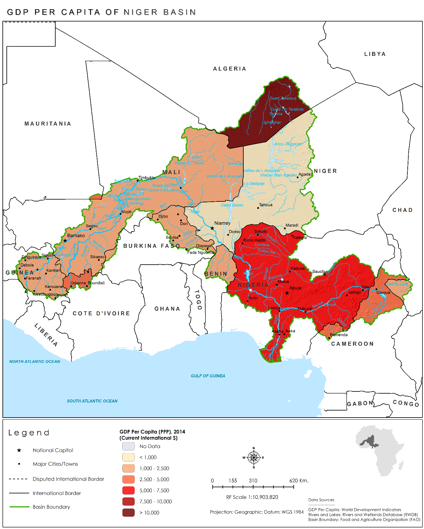 GDP per capita in the Niger Basin is varied.