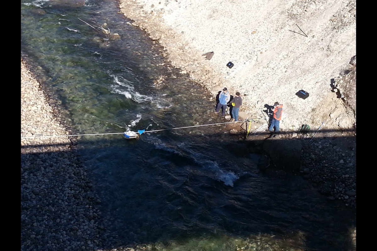 The down looking ADCP is a portable device used as a stream gauging device, and considered a more reliable option to the mechnical current meters. The down looking ADCP is mounted to a small floating device or boat and pulled across the cross section of the gauging location. The ADCP captures the profile and velocity of the water source to calculate the discharge. The challenge of the profiling ADCP is river hydraulics that cause waves that pose a threat to making useful discharge measurements. These river hydraulic features are a common challenge in mountainous regions. Additionally, ADCP's have a limit on the velocity of water that can be detected. Please refer to the manufacturers specifications prior to procuring the device. The ADCP is effective in tidal areas or ocean to measure current, where current changes even though the water level may remain the same. The down looking ADCP is optimally suited for canals, estuaries, river deltas, and river reaches that experience backwater. ADCP's are expensive piece of equipment and careful precaution must be made when using it with a float device or boat.