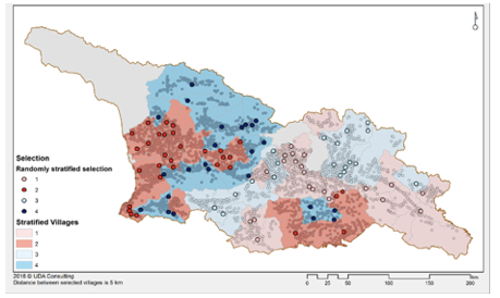 The methodology involved a household survey based on the latest statistical methods. The 2016 Georgia forest village survey is the first large scale collection of household level data (950 households in total) that was collected using a sample frame that covers all villages across different zones of natural hazards in rural communities. The selection of villages in the sample was conducted based on two indicators: i) forest cover and ii) frequency of natural hazards. The modules designed for household and community are identical to that for the 2016 forest village household survey in Turkey. Household level information focuses on income generating activities (especially forest-related income), access to forest resources, and access to social assistance programs (social insurance program, income from social assistance, and receiving fuelwood from firewood voucher programs).