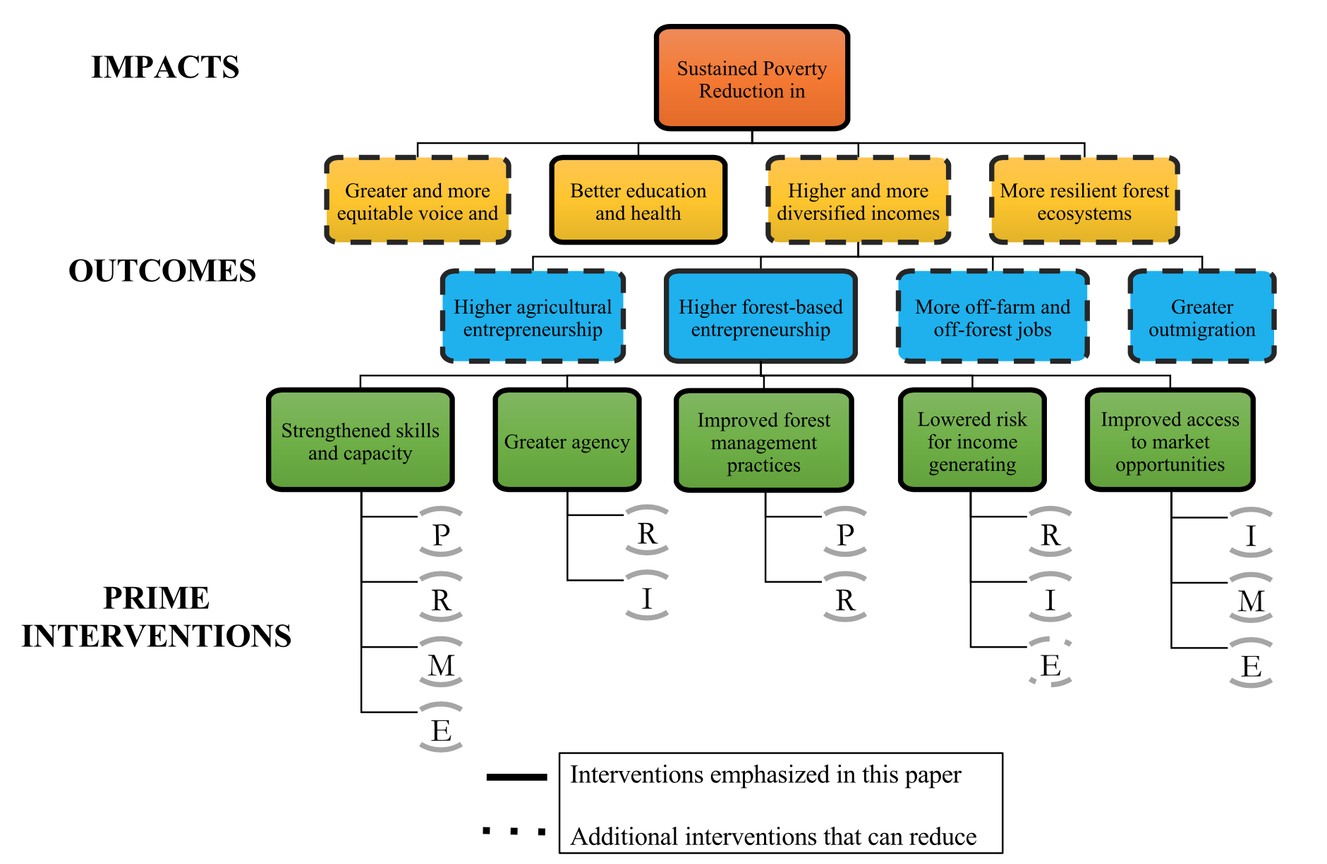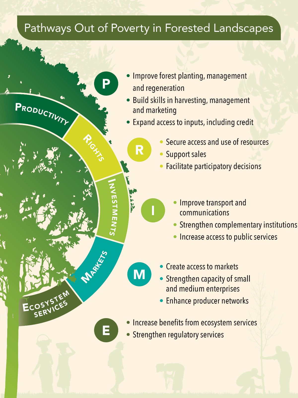 The PRIME framework helps researchers and practitioners to conceptualize the multiple ways forests contribute to poverty reduction and inform interventions in forest landscapes. Five key strategies for reducing poverty in forest landscapes play and reinforce each other: