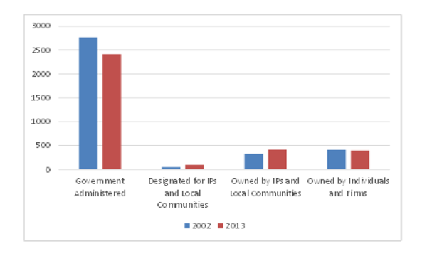 Globally, 76% of global forests are controlled by governments, with the other 24% managed by communities and the private sector (FAO 2015). The emergence and consolidation of community-based forest management reflects a marked change in forestry in the last two decades. Community control over forests has increased, from 21% in 2002 to 30% in 2013 – a trend that is largely driven by changes in Latin America and China (Rights and Resources Initiative (RRI) 2014).