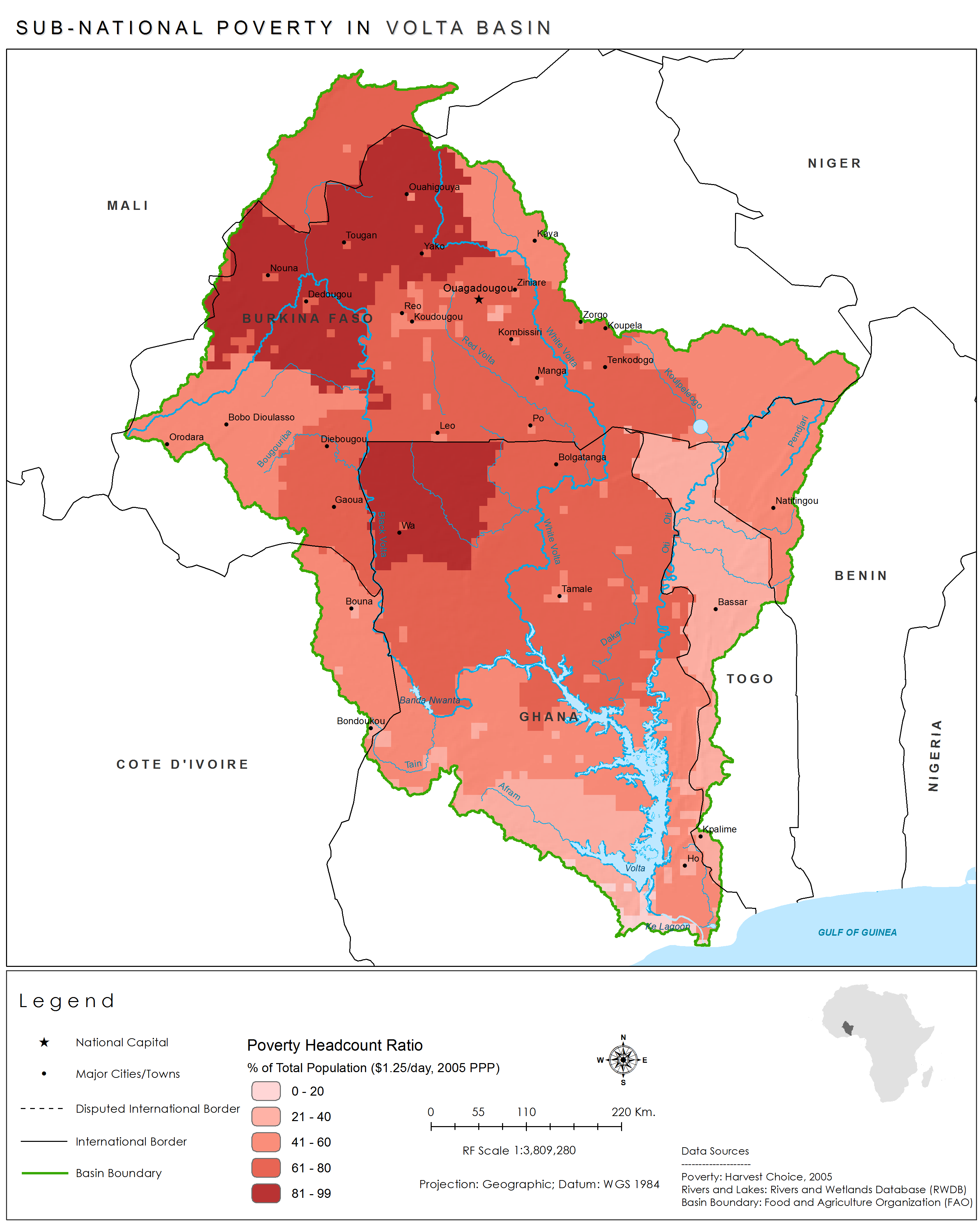 Poverty within the Volta Basin, as measured as the percent of the population living on less than $1.25 a day, is quite high, particularly in Burkina Faso and Ghana.