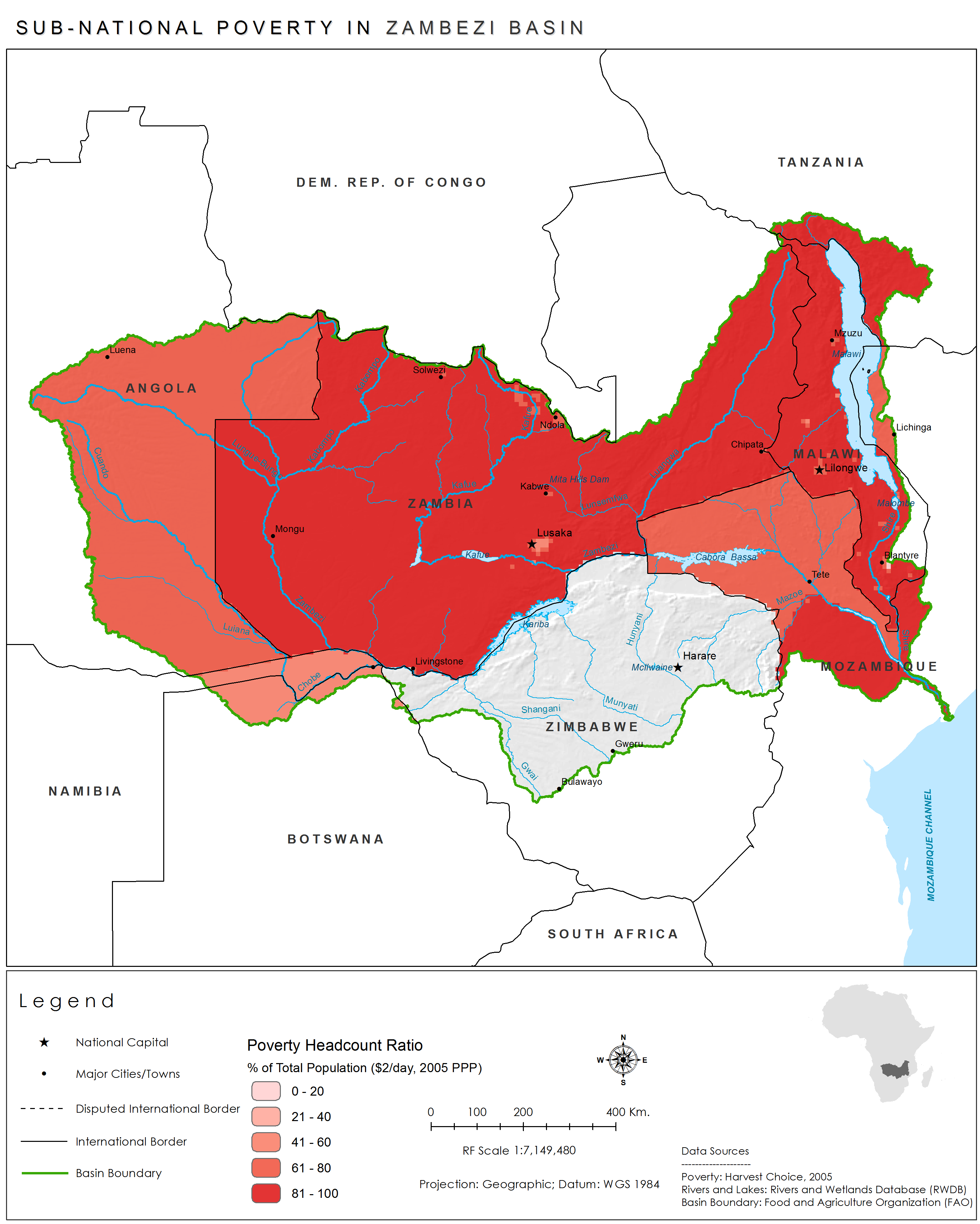Poverty in the Zambezi Basin is more striking when viewed from the percent of the population living on less than $2 a day.