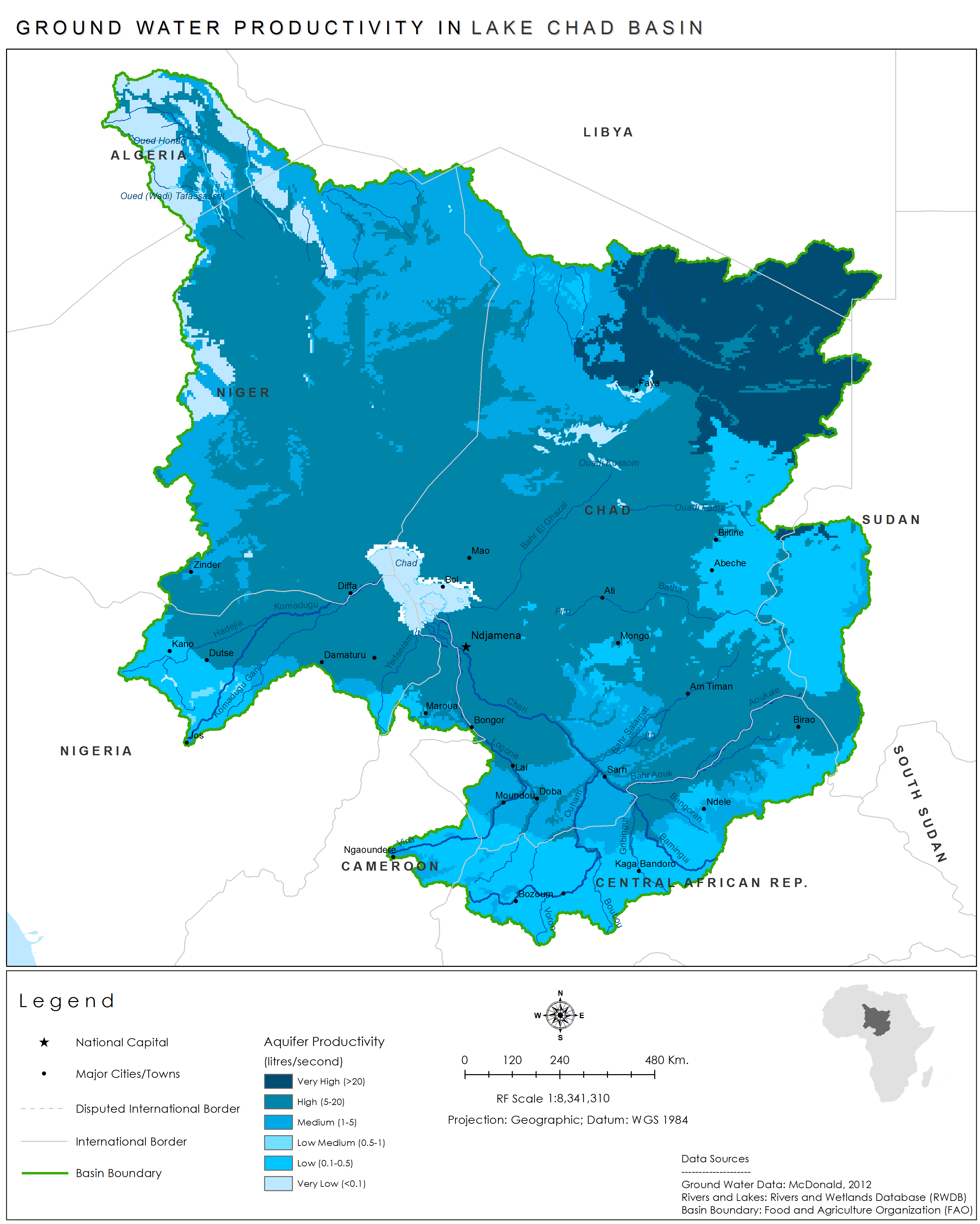 Groundwater productivity within the Lake Chad basin varies considerably.