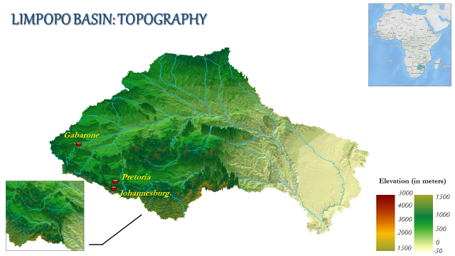 The topography of the Limpopo Basin is undulating but absolute elevations are not very high.