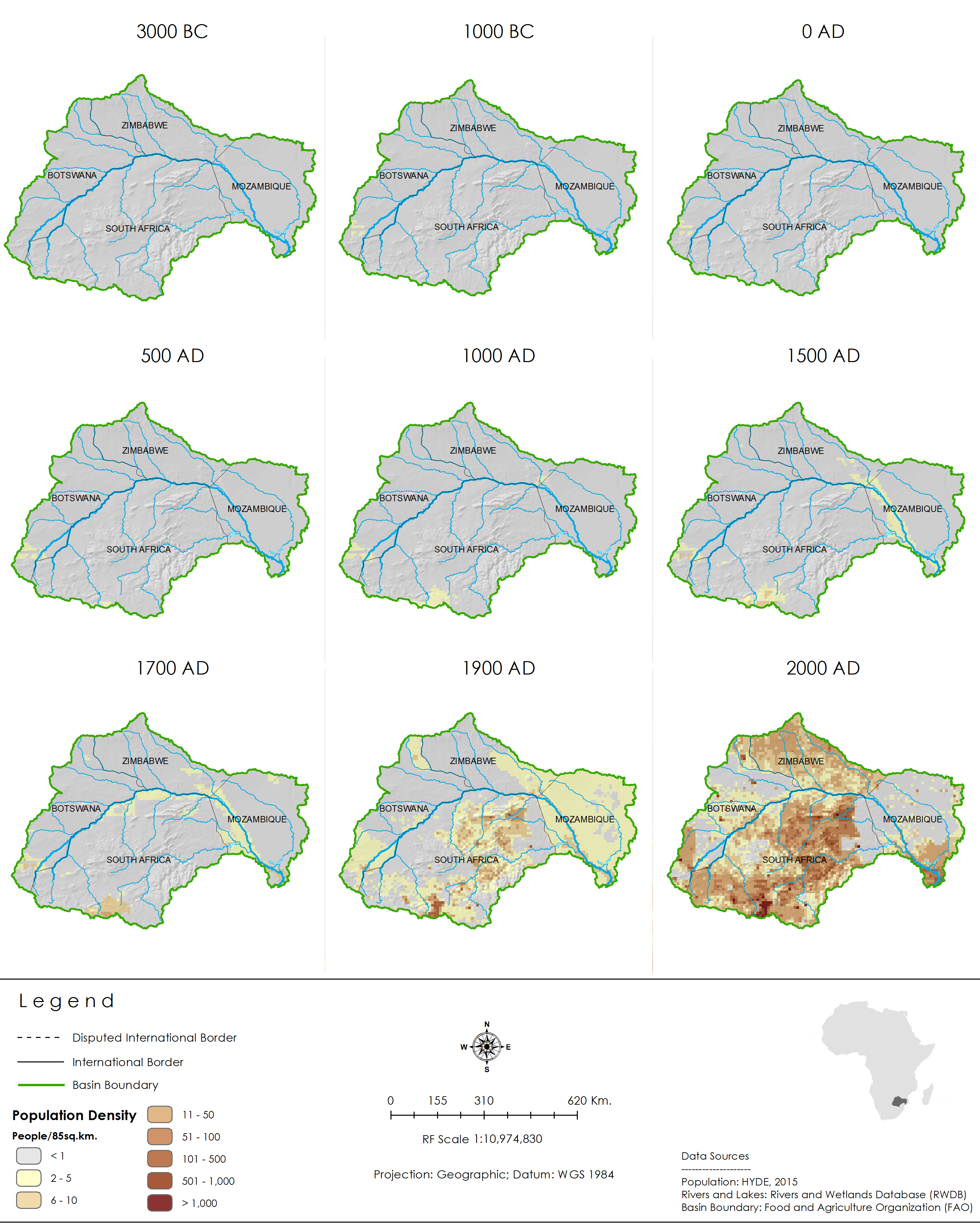 Historical population growth in the Limpopo Basin.