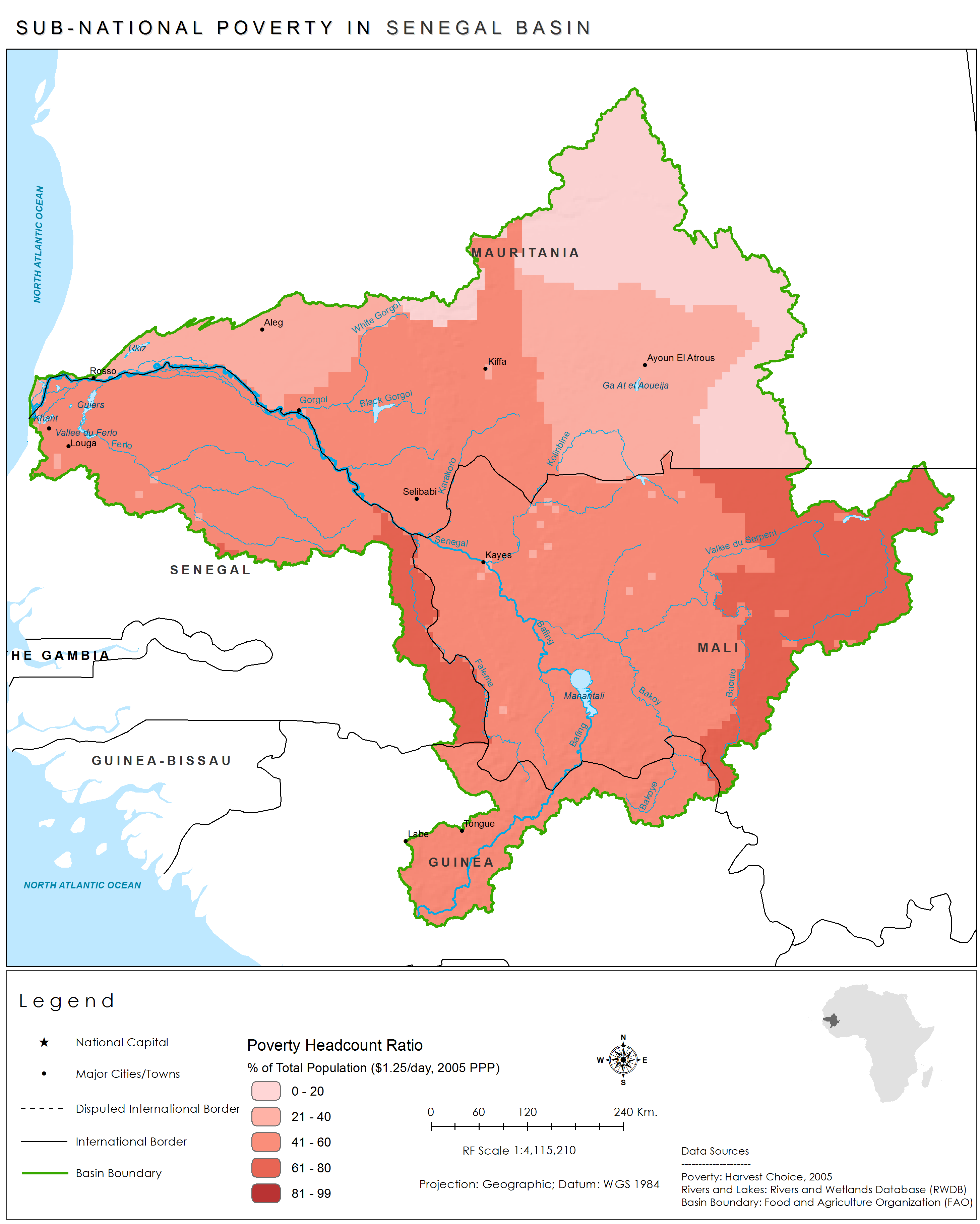 Poverty in the Senegal Basin, measured as the percent of the population living on less than $1.25/day, is very high.